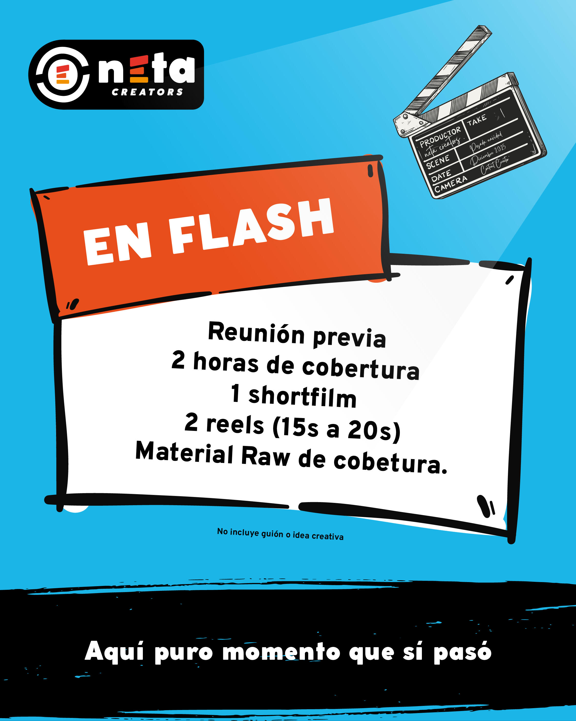 Buscamos la neta en cada historia.No ármanos escenasNo pedimos repetir tomas.Sabemos que la magia está en lo que ya está pasando.